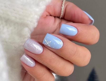 Pour une manucure qui évoque vraiment la magie de la saison, nos rédactrices vous recommandent d’opter pour l’effet chrome qui va ajouter une touche lumineuse et moderne à vos ongles. Le vernis effet chrome bleu glacier est un véritable bijou qui reste dans l’esprit chic et hivernal.