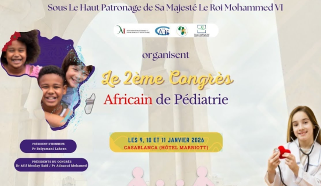Le 2ème Congrès africain de pédiatrie qui, s’est tenu du 9 au 11 janvier 2026 à Casablanca, a connu une participation massive de pédiatres marocains et africains. Des thématiques majeures ont été débattues, notamment l’alimentation, la vaccination et le diabète de l’enfant.
