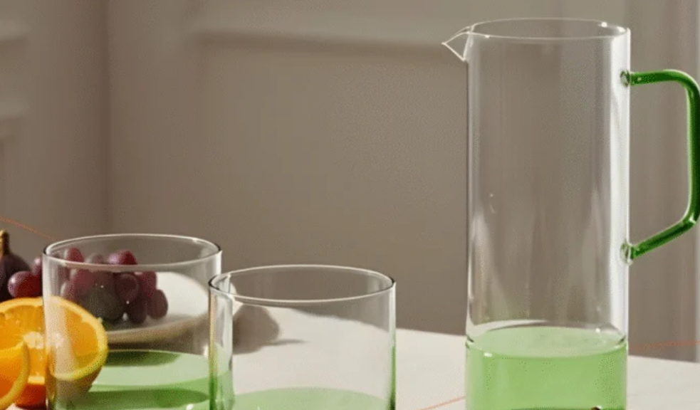 Chez Habitat, le verre devient une véritable signature. La collection Cléo met en avant le verre cristallin soufflé bouche, travaillé avec précision. Les formes rainurées jouent avec la lumière, et chaque pièce présente de légères variations qui rappellent le geste artisanal. Flûtes, verres à vin ou à eau s’inscrivent dans une esthétique à la fois sobre et élégante.