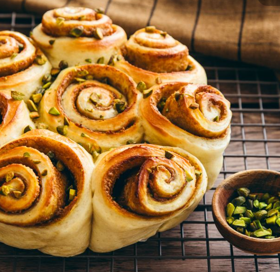 Brioche roulée à la pistache.
