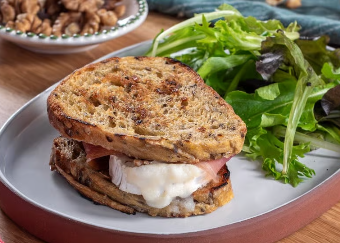 Vous allez adorer ce grilled cheese original au chèvre fondant et jambon cru !